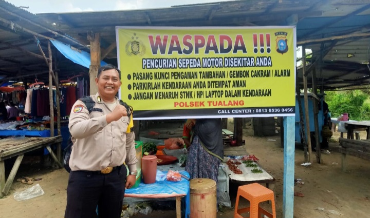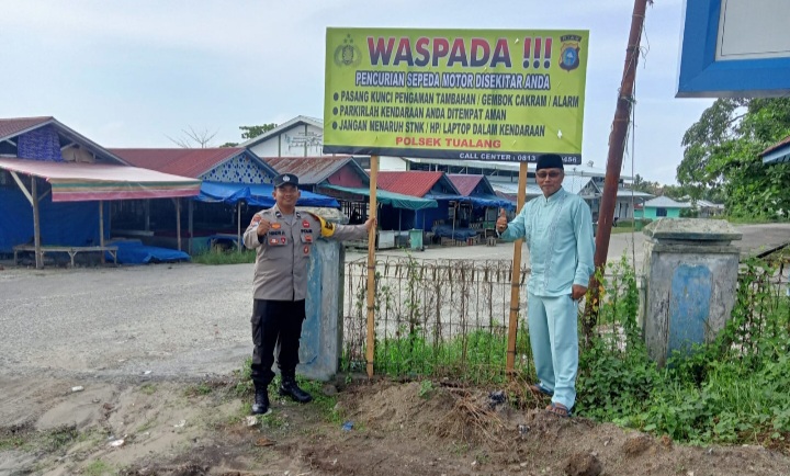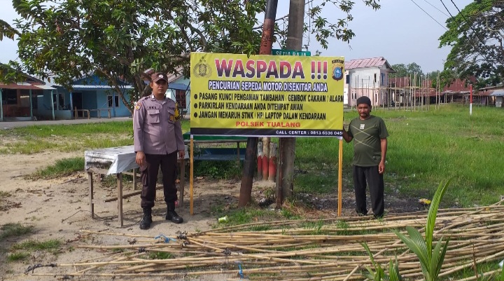 Bhabinkamtibmas Polsek Tualang Pasang Spanduk Imbauan Cegah Curanmor