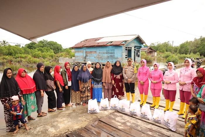 MERANTI, datariau.com - Bhayangkari Cabang Kepulauan Meranti dan Yayasan Kemala Bhayangkari (YKB), Rabu (16/1/2024) siang, memberikan bantuan sosial (bansos) kepada masyarakat yang terdampak air pasang besar di daerah pesisir Desa Alah air.