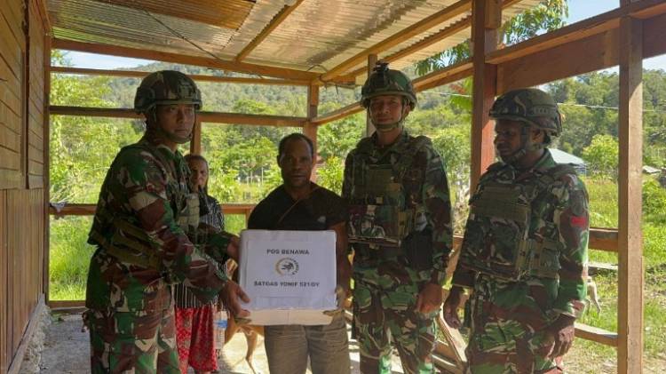 Binter Berbagi Rasa Duka, Satgas Yonif 521/DY Sampaikan Belasungkawa dan Dukungan Moril Kepada Keluarga yang Berduka di Distrik Benawa