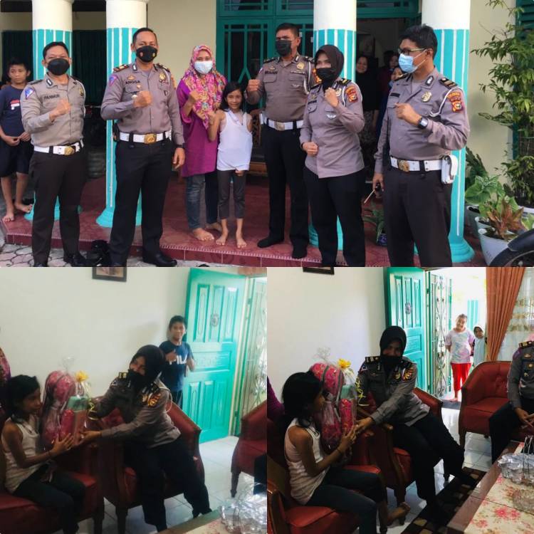 Bocah SD Korban Tabrak Lari Pengendara Ojol Dikunjungi Satlantas Polresta Pekanbaru