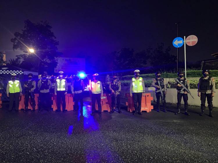 Personil Brimob Polda Riau saat melaksanakan patroli rutin malam Ramadhan.
