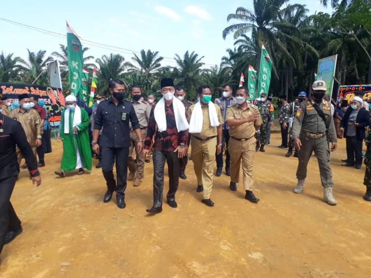 Bupati Rokan Hilir Afrizal saat kunjungan kerja perdana di Kecanatan Basira dalam program TMMD ke 111 kodim 0321 Rohil.