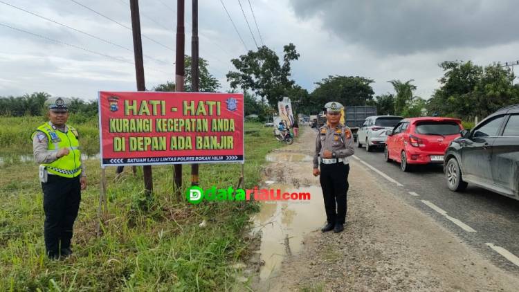 Cegah Macet, Satlantas Polres Rohil Pasang Spanduk Rawan Banjir