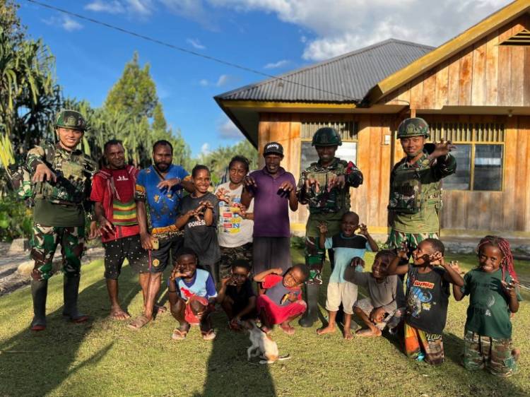 Binter Peduli Sesama Satgas Yonif 521/DY Bagikan Sargal Pakaian Layak untuk Masyarakat Distrik Kobakma