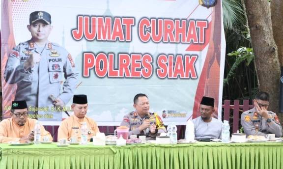 Kapolres Siak AKBP Asep Sujarwadi SIK MSi pimpin langsung program Jumat Curhat dan Cooling System Pemilu 2024, di Kecamatan Sei Apit.