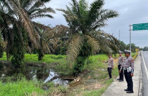 Kapolsek Tualang Kompol Hendrix SH MH di dampingi personil Polsek Tualang pantau debit air di jalan lintas Siak-Pekanbaru.