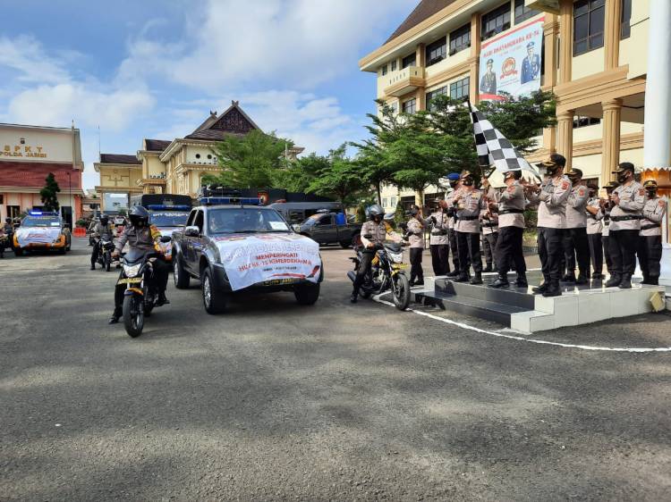 Kapolda Jambi, Irjen Pol Firman Santyabudi didampingi Wakapolda, Brigjen Pol Dul Alim melepas secara simbolis bantuan sembako serentak dalam rangka Hari Kemerdekaan Ke-75 Republik Indonesia di Mapold