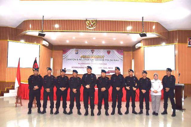 Dansat Brimob Polda Riau Pimpin Pisah Sambut Danyon B Pelopor