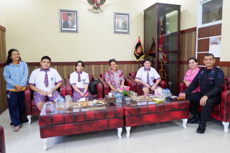 Dansat Brimob Polda Riau Terima Kunjungan Tim Publikasi SD Santa Maria