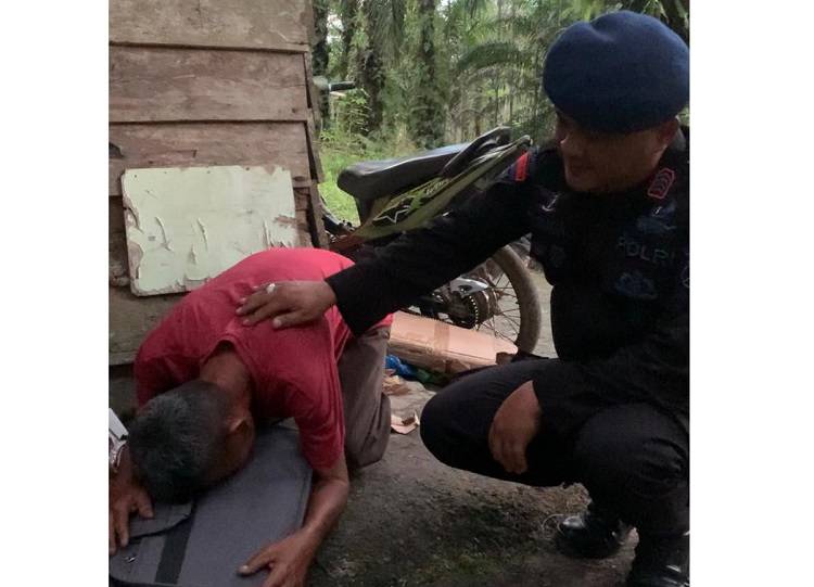 Darwin Hans Nasution, Guru di Rohil Berjalan Kaki Setiap Hari ke Sekolah Bersyukur Dapat Bantuan Brimob Polda Riau