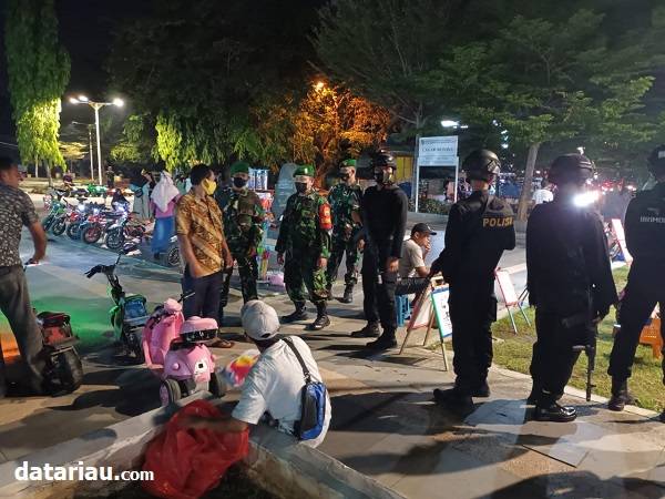 Patroli Garnizun TNI Polri saat mendatangi salah satu tempat keramaian guna pengamanan Ramadhan 2022, Ahad (10/4/2022).