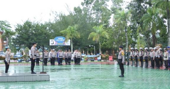Dibawah Guyuran Hujan, AKBP Asep Sujarwadi Apel Gelar Pasukan Kesiapsiagaan Pengamanan Tahapan Pemilu 2024