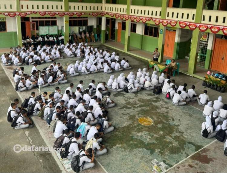 Selain itu, personel Ditlantas Polda Riau juga membagikan brosur edukasi tertib berlalu lintas kepada para pelajar sebagai upaya memperluas pemahaman mengenai keselamatan berkendara.