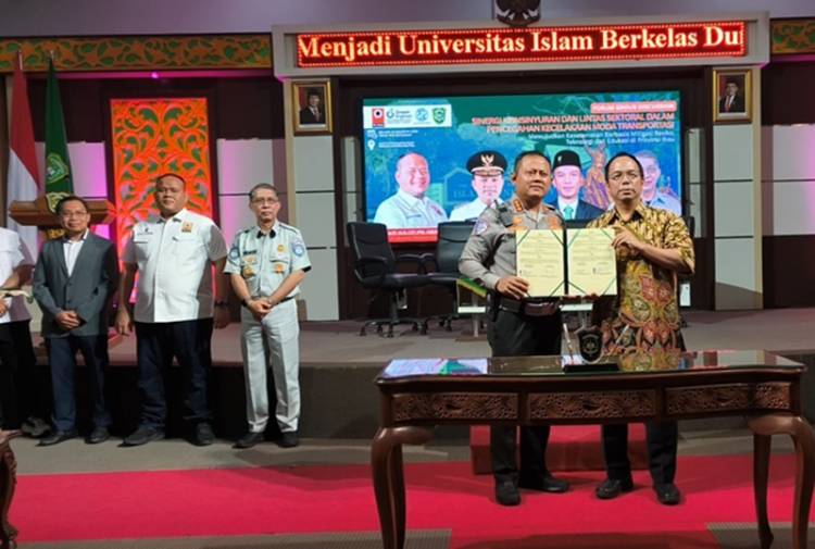 PEKANBARU, datariau.com - Direktorat Lalu Lintas (Ditlantas) Polda Riau menandatangani Memorandum of Understanding (MoU) dan Memorandum of Agreement (MoA) dengan Universitas Islam Riau (UIR), disertai Focus Group Discussion (FGD) bersama Persatuan Insinyur Indonesia (PII) Wilayah Riau. Kegiatan berlangsung di Auditorium Lantai 4 Rektorat UIR, Selasa (12/8/2025), pukul 08.30-13.00 WIB.