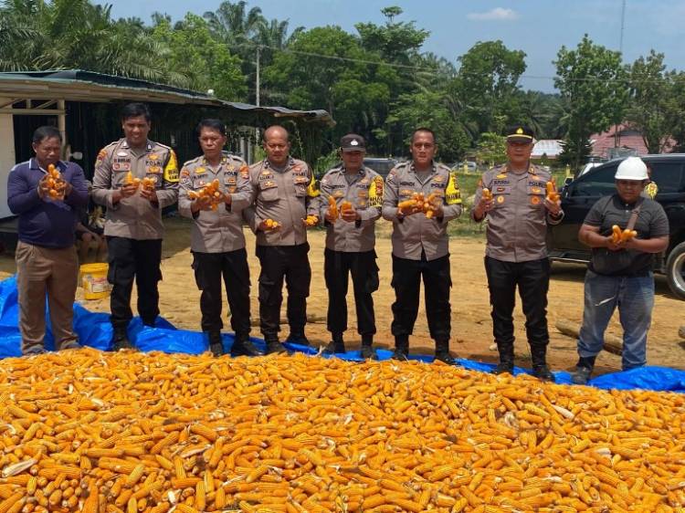 Dukung Swasembada Pangan, Polsek Bagan Sinembah Panen Jagung di Balai Jaya