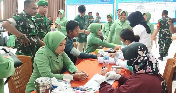 TNI di Rohul Gelar Donor Darah Dalam Rangka HUT Ke-80 Persit Kartika Chandra Kirana