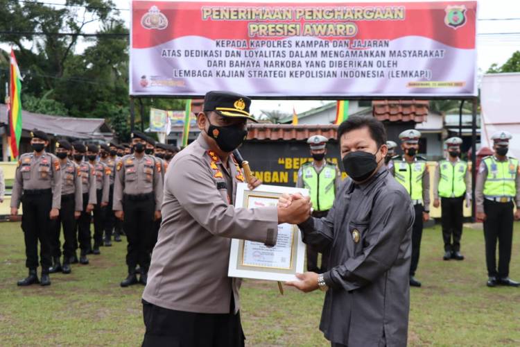 Gencar Berantas Narkoba, Kapolres Kampar Terima Penghargaan Presisi Award dari LEMKAPI