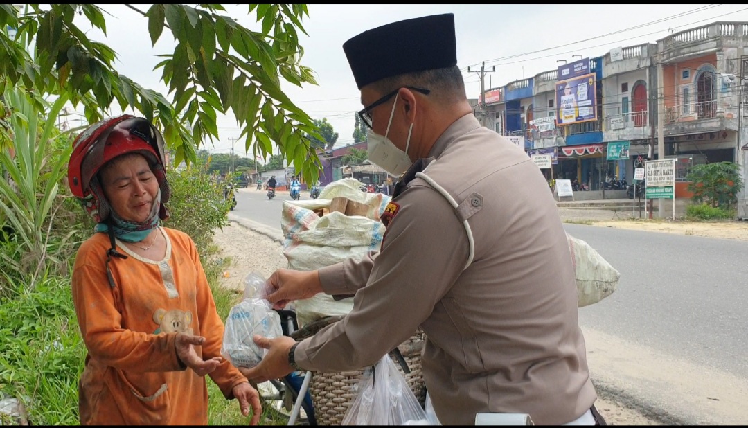 Polisi di Kampar Berbagi Rezeki dengan Masyarakat Miskin di Desa Bukit Keratai Rumbio Jaya