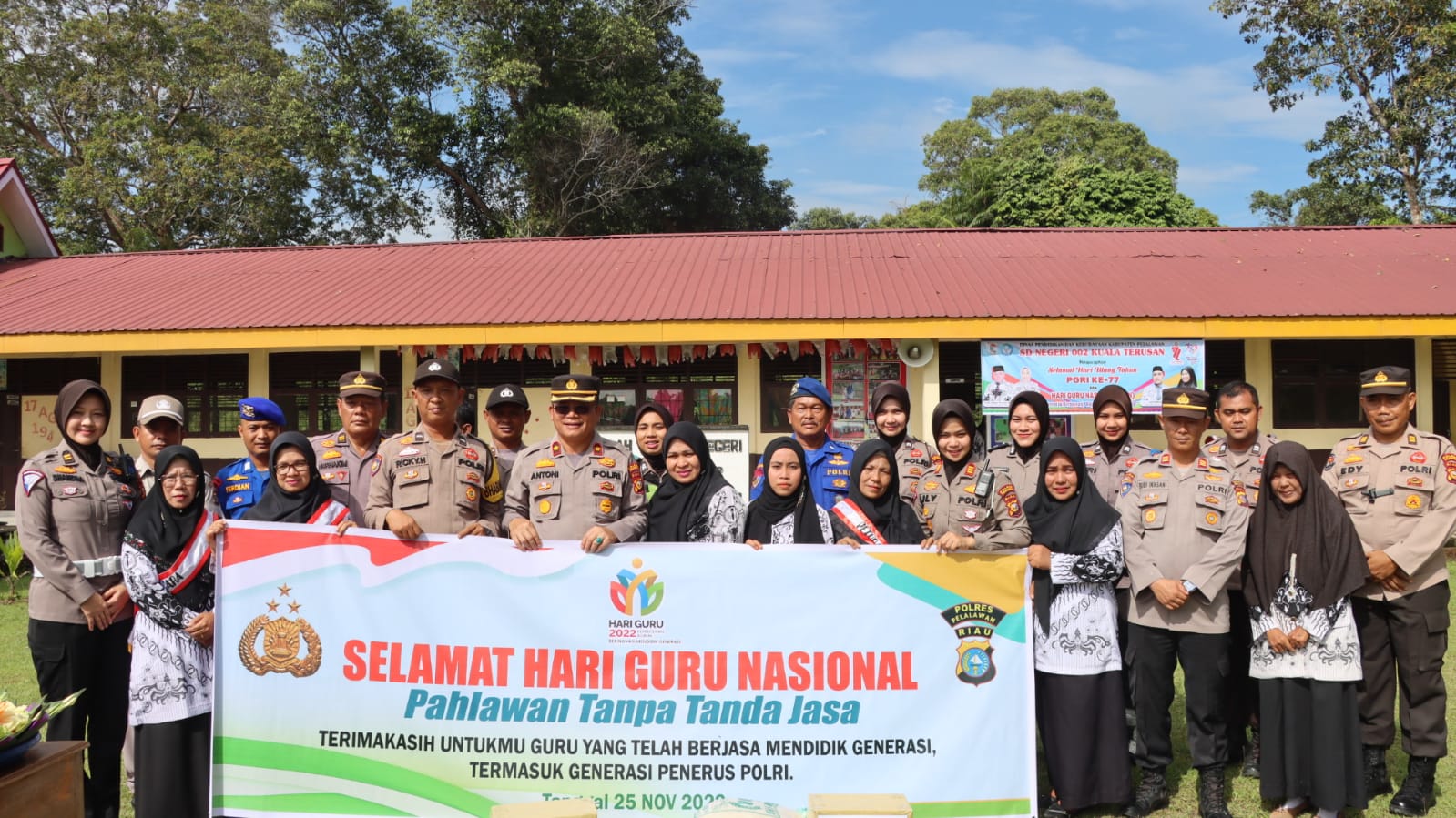 Guru SDN 002 Kuala Terusan Terharu, Saat Polres Pelalawan Datang Berikan Kejutan