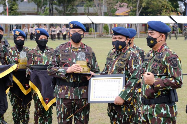 Saat melakukan kunjungan kerja di Satuan Brimob pada Rabu sore (13/4/2022), Kapolda memberikan penghargaan kepada Kepala Satuan Kerja (Kasatker) dan Kepala Satuan Wilayah (Kasatwil) berprestasi.