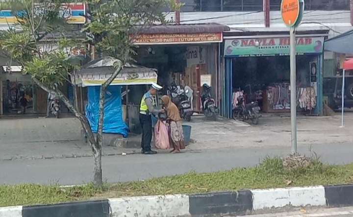 Iptu A Ramadhan dan Personil Unit Lantas Polsek Tualang Giat Jumat Barokah