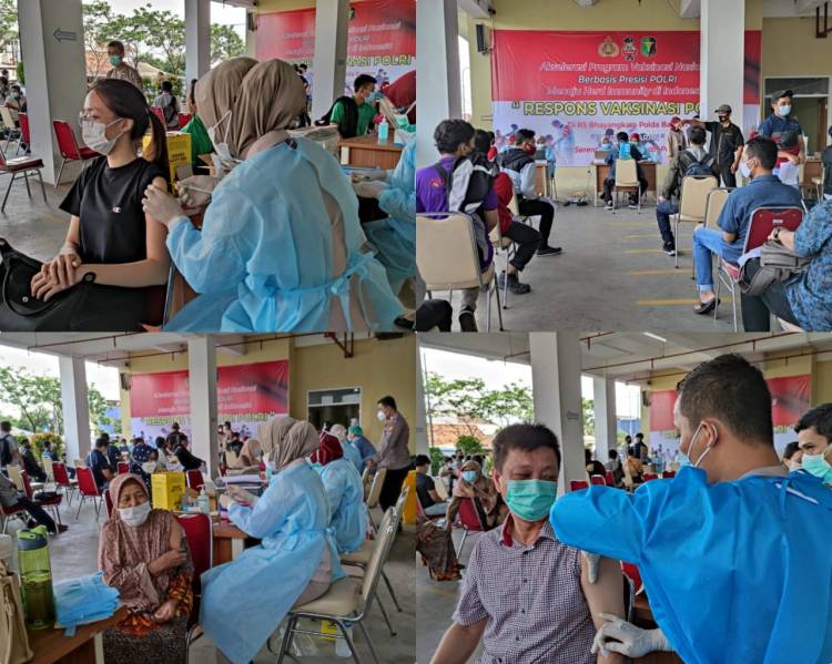 "Dalam rangka menjelang Hari Bhayangkara Ke-75 tahun ini, kita dari Polda Banten melaksanaan kegiatan vaksinasi massal. Dimana tujuannya untuk meningkatkan imunitas dan kekebalan tubuh masyarakat agar terhindar dari virus covid-19 serta guna mendukung program pemerintah terkait akselerasi program vaksinasi nasional berbasis Presisi Polri menuju herd immunity di Indonesia," kata Kabiddokkes Polda Banten.