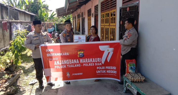 Jelang Hari Bhayangkara ke-77, Polsek Tualang Berikan Bantuan Paket Sembako Kepada Warakauri