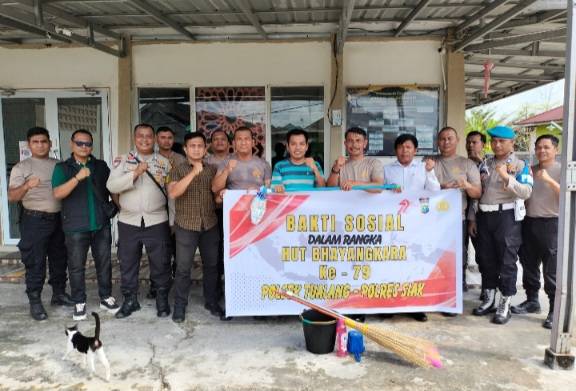 Personil Polsek Tualang laksanakan bakti sosial jelang HUT ke-79 Bhayangkara.
