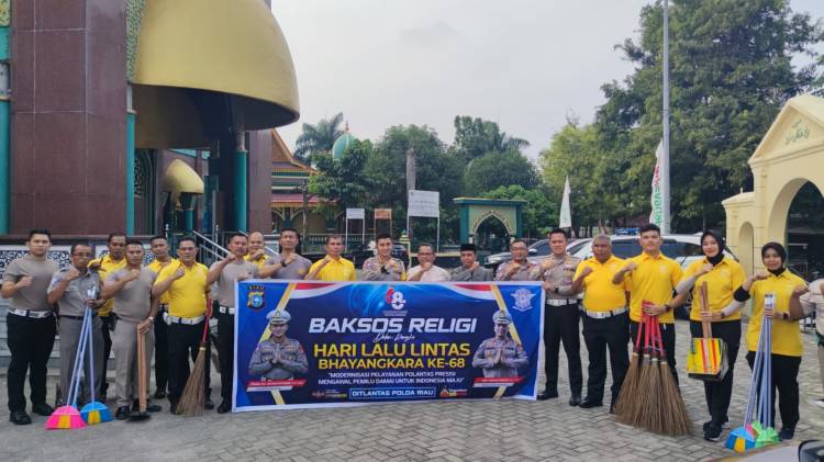 PEKANBARU, datariau.com - Menyambut hari ulang tahun (HUT) Lalu Lintas Bhayangkara ke-68, Ditrektorat Lalu Lintas (Ditlantas) Polda Riau melaksanakan kegiatan bakti religi di wilayah hukum Polda Riau, Senin (4/9/2023).