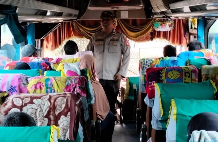 Jelang Mudik Lebaran 2024, Polsek Tualang Berikan Imbauan Kepada Sopir Bus Maupun Penumpang