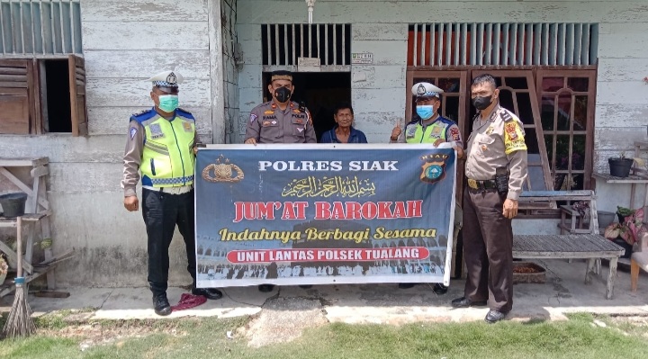 Jumat Barokah Unit Lantas Polsek Tualang di Desa Maredan Barat.