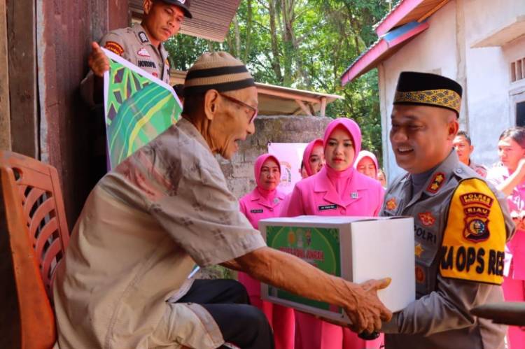 Jumat Berkah, Kapolres Rohil Didampingi Ketua Bhayangkari Sabangi Masyarakat Kurang Mampu