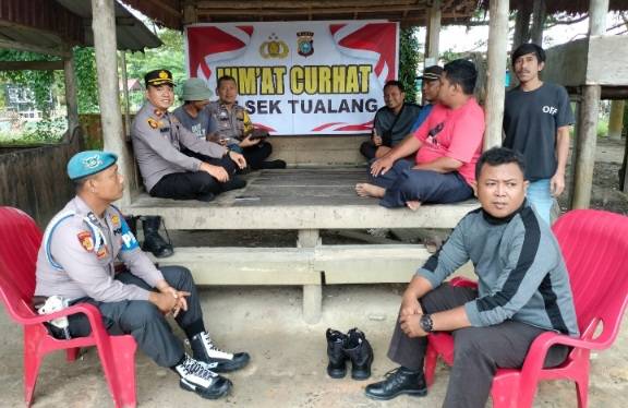 Kapolsek Tualang Kompol Arry Prasetyo SH MH di dampingi personil Polsek Tualang.