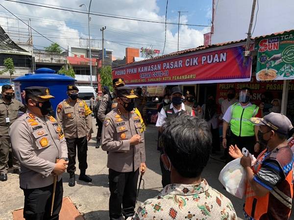 PEKANBARU, datariau.com - Kabaharkam Polri Komjen Arief Listyanto bersama rombongan, didampingi Kapolda Riau Irien Agung Setya Imam Effendi melakukan pengecekan Posko PPKM Pasar Cikpuan dan PPKM Kelurahan Tangkerang Timur pada kunjungan kerjanya diwilayah hukum Polda Riau pada Selasa (3/8/2021).