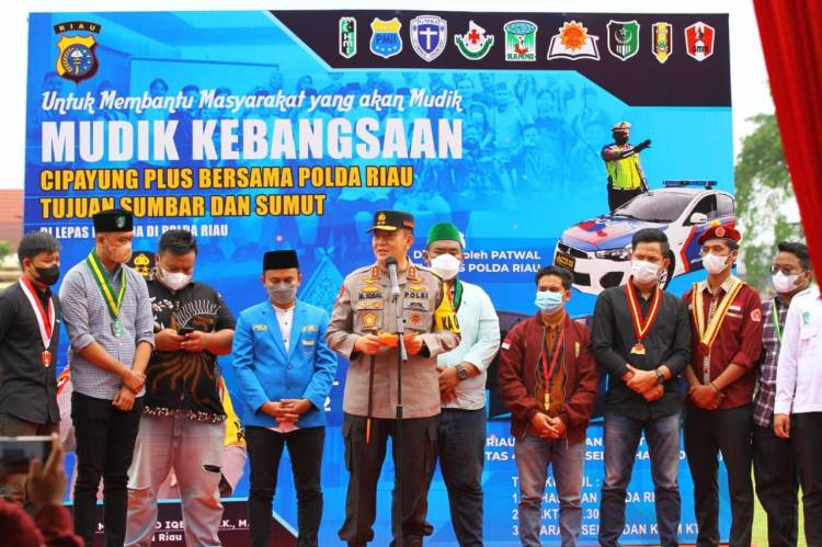 Kapolda Riau Lepas 5 Bus Mudik Gratis Tujuan Sumbar dan Sumut