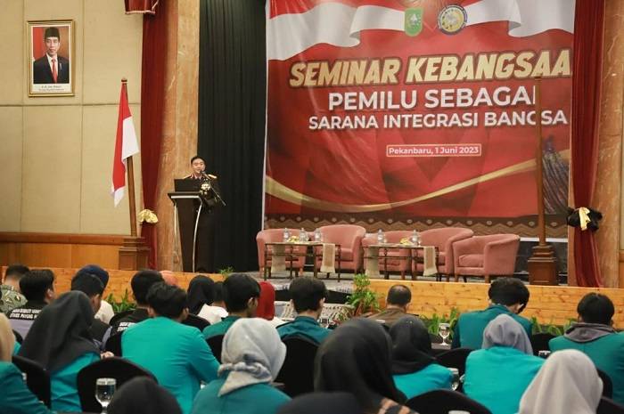 Kapolda Riau Menjadi Keynote Speaker dalam Seminar Kebangsaan "Pemilu sebagai Sarana Integrasi Bangsa"