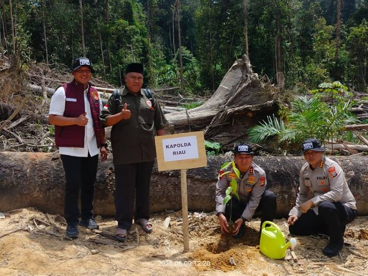 Kapolda Riau Tanam Pohon di Lokasi Perambahan Hutan di Desa Balung XIII Koto Kampar
