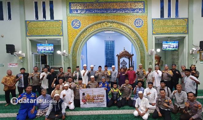 MERANTI, datariau.com - AKBP Kurnia Setyawan SH SIK, Kapolres Kepulauan Meranti yang baru membuat langkah pertamanya di Tanah Jantan dengan memperkenalkan diri di masjid tertua di Kota Selatpanjang, Sabtu (23/12/2023).