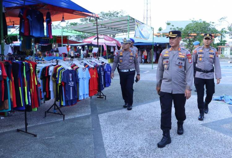 Kapolres Inhil Jalan Kaki Pantau Situasi Kamtibmas Pasar