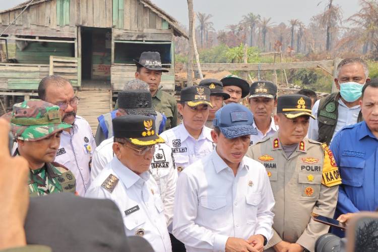 Kapolres Rohil Dampingi Menteri Lingkungan Hidup Pengecekan dan Pemadaman Karhutla di Kubu Babussalam