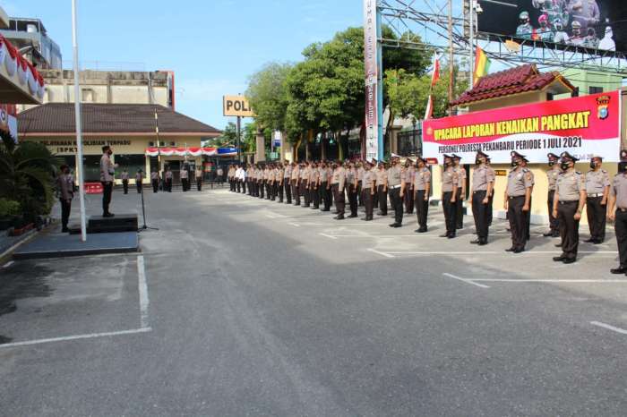 Kapolresta Pekanbaru Pimpin Upacara Kenaikan Pangkat 69 Personil