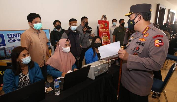 Penyampaian ini saat menghadiri peninjauan vaksinasi, penyerahan bantuan sosial dan voucher isi ulang oksigen yang diprakarsai oleh Akpol 1995 atau Patriatama di Universitas Bina Sarana Informatika (BSI), Bekasi, Jawa Barat, Jumat (3/9/2021).
