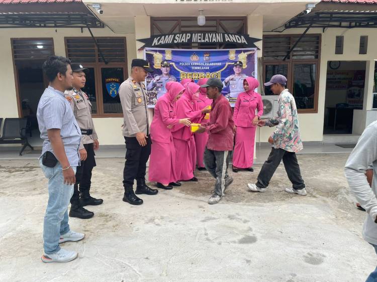 Kapolsek KSKP Bersama Ketua Ranting Bhayangkari Bagikan Takjil Kepada Para Buruh Pelabuhan