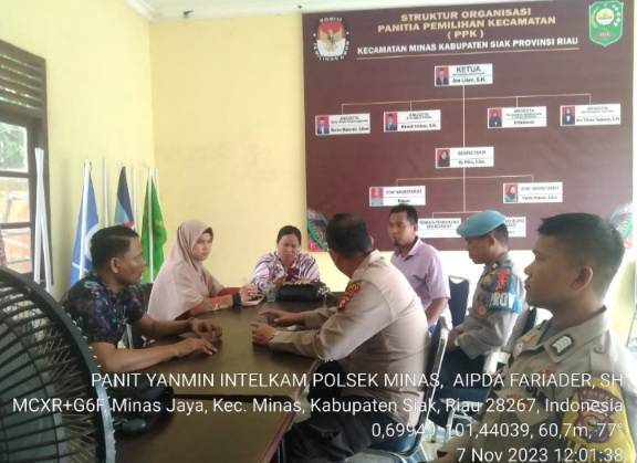 Kapolsek Minas AKP Wan Mantazakka SH MH dan personil sambangi Sekertariat PPK dan Panwascam Minas.