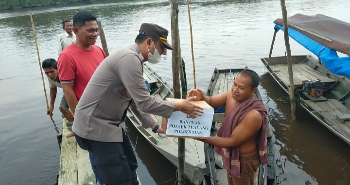 Kapolsek Tualang Bagikan Bansos Bhayangkara