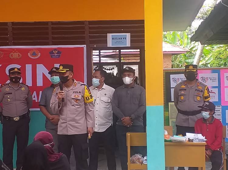 Kunjungan Kapolres Kuansing ke Gerai Vaksin TNI-POLRI di Desa Simandolak Benai dan Desa Sukamaju Singingi Hilir