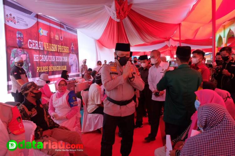 ?Selamat datang di Inhil pak Kapolda Riau Irjen Pol Agung Setya Imam Efendi SH SIK MSi yang untuk sekian kalinya sudah berkunjung ke kabupaten Indragiri Hilir, tentunya ini suatu kebanggaan bagi masyarakat Indragiri Hilir, tentu ini merupakan wujud kepedulian beliau yang sangat tinggi kepada masyarakat kabupaten Indragiri Hilir, dalam rangka upaya kita meningkatkan jumlah vaksinasi bagi masyarakat, yang hari ini baru mencapai 22 persen. Dengan adanya penambahan 1500 dosis ini akan mempercepat pencapaian herd immunity,? ujarnya. (den)