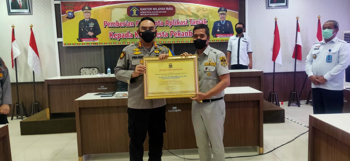 Menjawab Keluhan Masyarakat, Kapolresta Pekanbaru Terima HAKI Dan Penghargaan Atas Aplikasi Tanjak Polresta