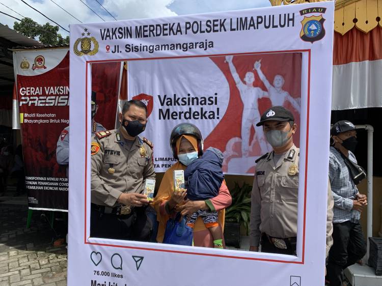 Merangsang Herd Immunity, Polsek Limapuluh Hadiahi Dua Botol Stimuno Kepada Peserta Vaksinasi