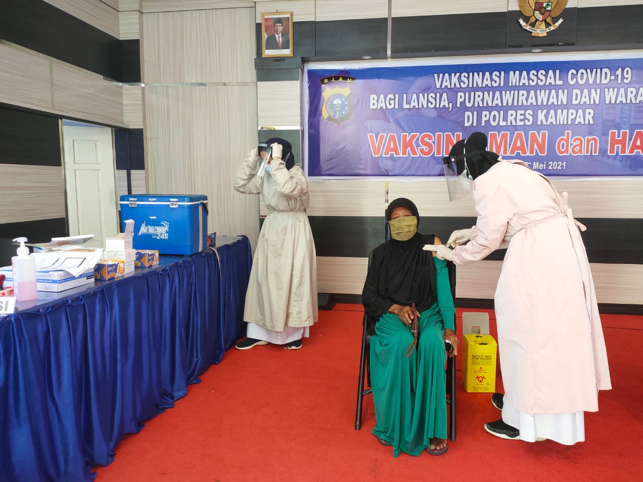 KAMPAR, datariau.com - Selasa pagi (25/5/2021) digelar Vaksinasi Massal Covid-19 untuk para Lansia yang dilaksanakan di Gedung Serbaguna Polres Kampar, beberapa peserta vaksinasi ini dari kelompok lansia juga ada yang dari Purnawirawan dan Warakawuri.